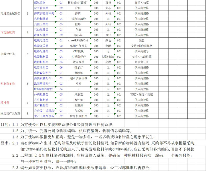 第一个就是编码规则,是可以自动生成的。因为做机械装备,这个行业的物料分两块的,一个是标准件,一个是非标准件。标准比如轴承、电机、螺丝、电机、气动。